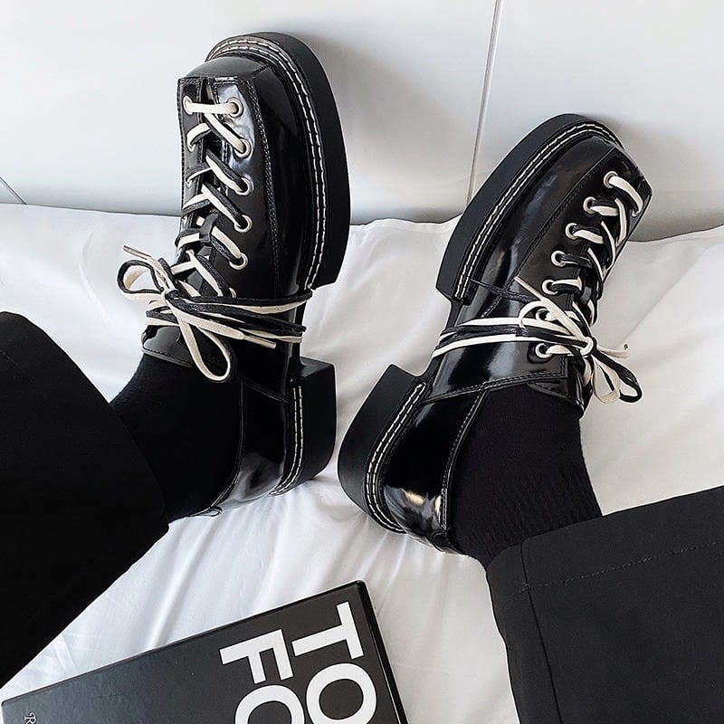 PUレザー厚底カジュアルシューズ