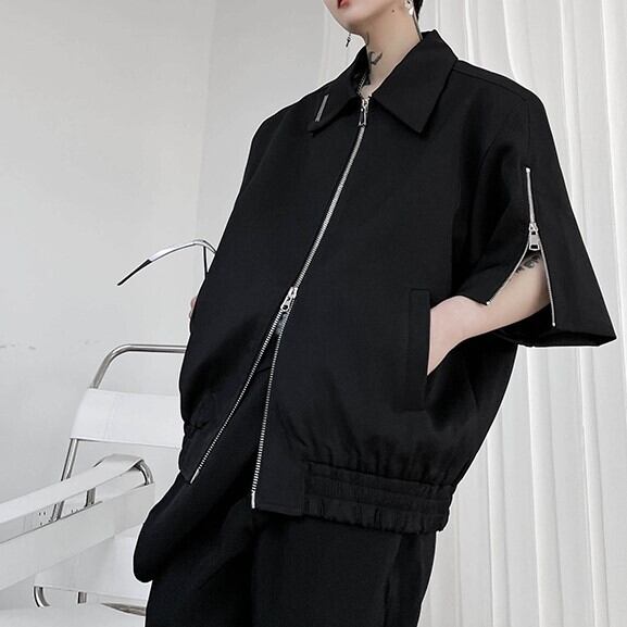 袖のジップがアクセントの半袖カジュアルジャケット。