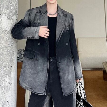 【セットアップ】色落ちデザインデニムトップス / パンツセット