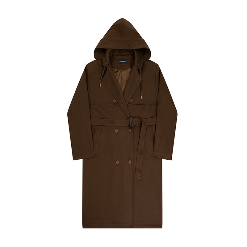 ロング丈フード付ウールコート